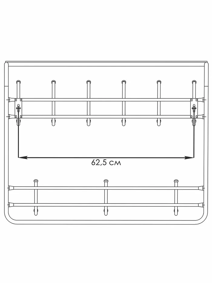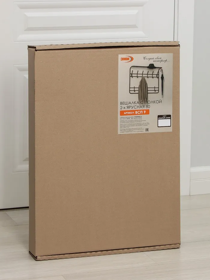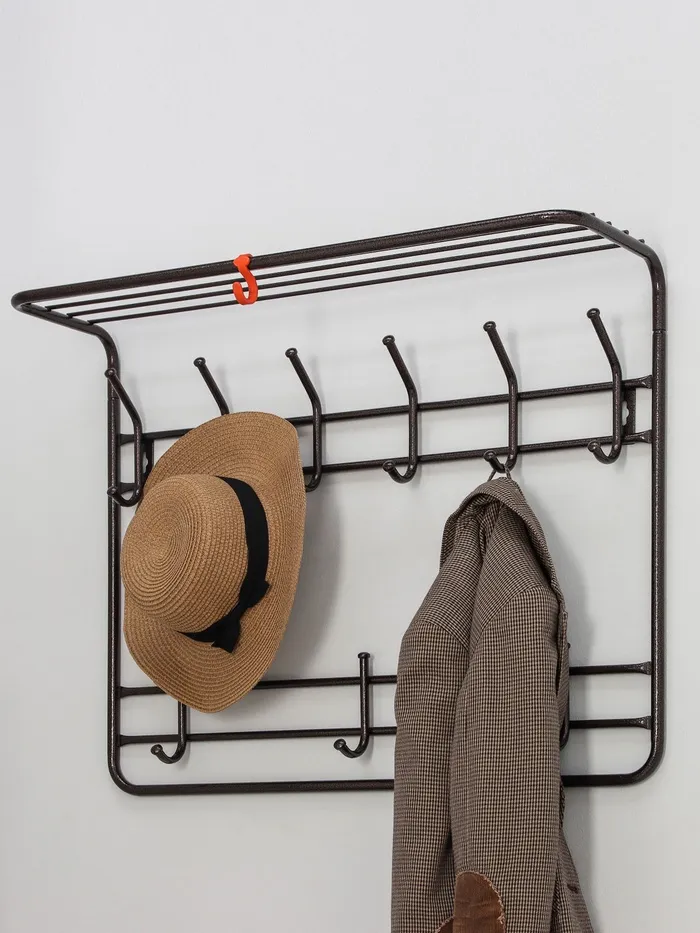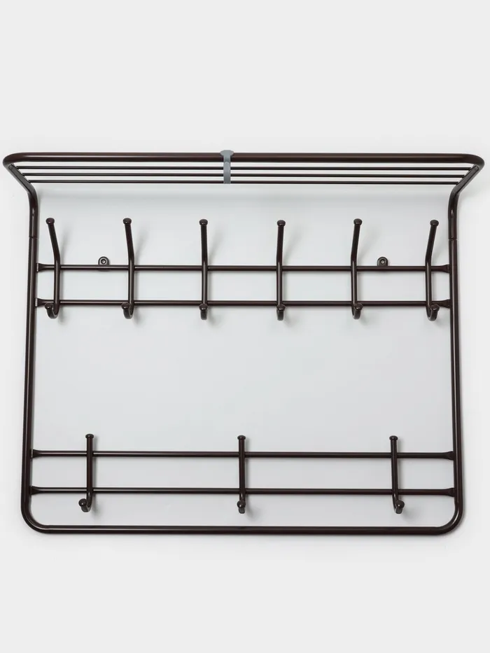Вешалка настенная, с полкой, 9 крючков, 2 яруса, 73×22×58 см, коричневая — Характеристики