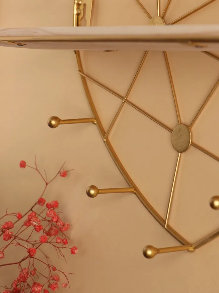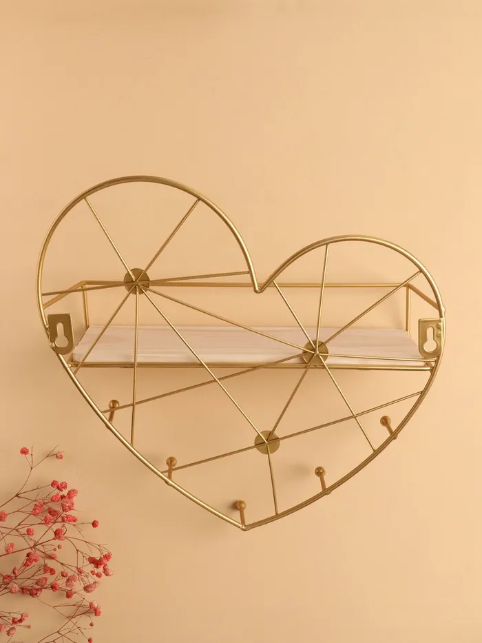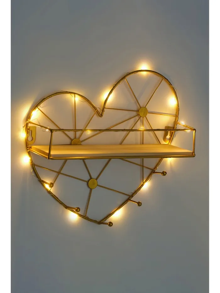 Вешалка настенная с полкой «Сердце», крючки декоративные, с подсветкой, 5 крючков, золото — Характеристики