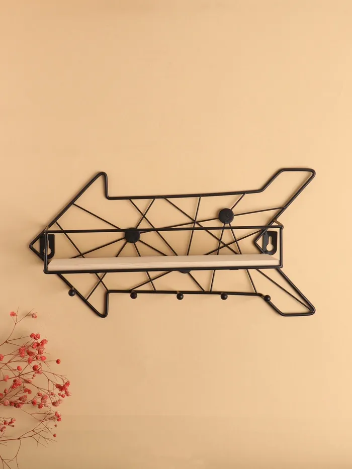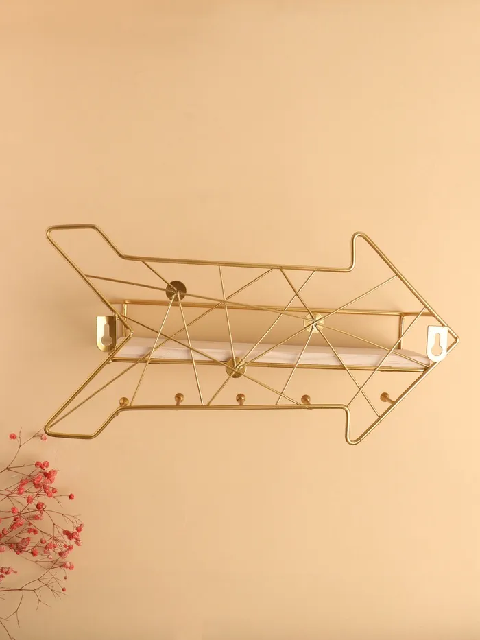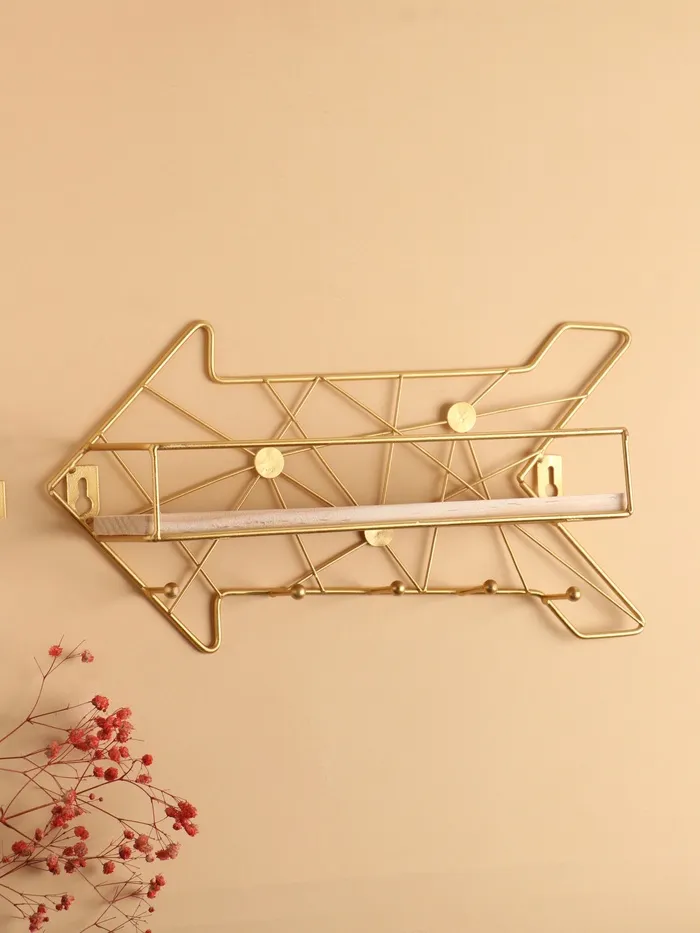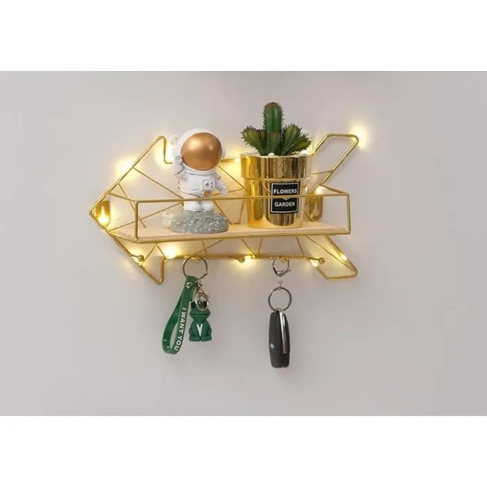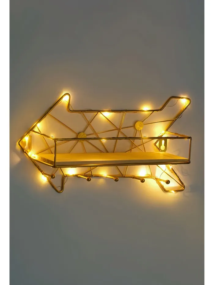 Вешалка настенная с полкой «Стрелка», крючки декоративные, с подсветкой, 5 крючков, золото