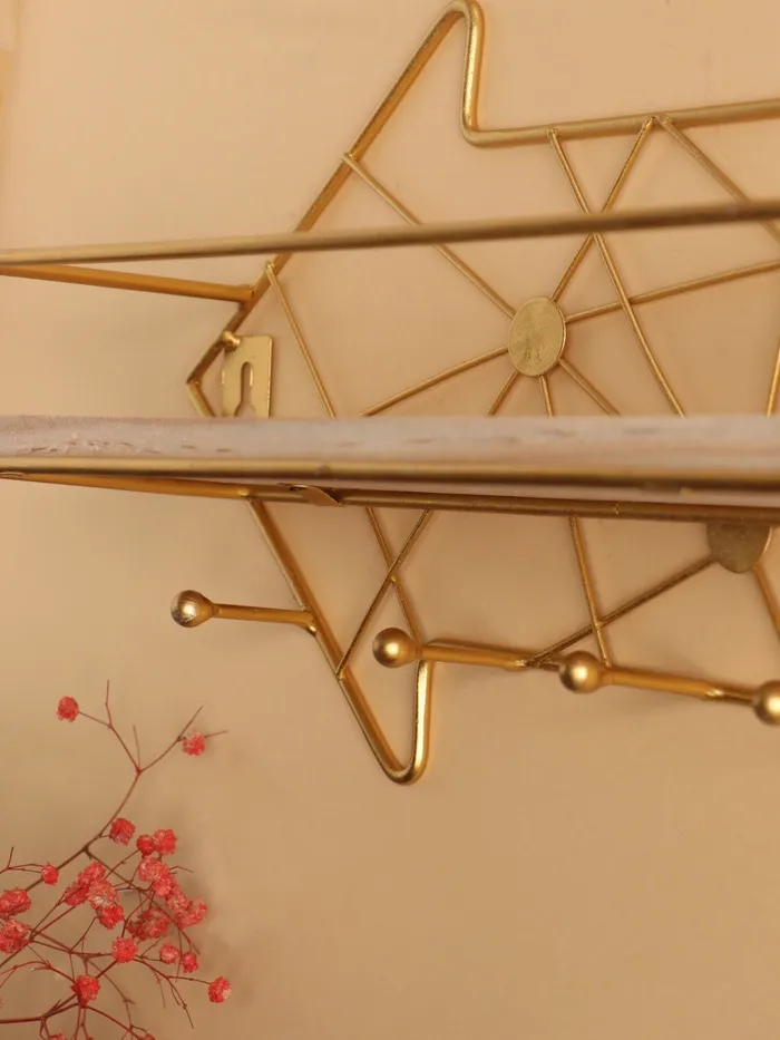 Вешалка настенная с полкой «Стрелка», крючки декоративные, с подсветкой, 5 крючков, золото — Характеристики