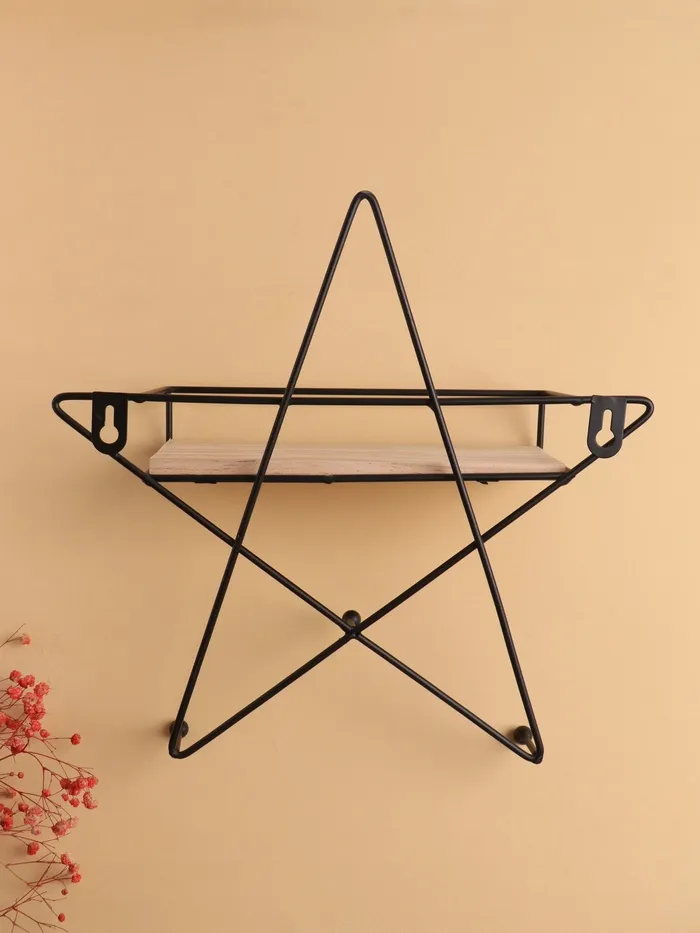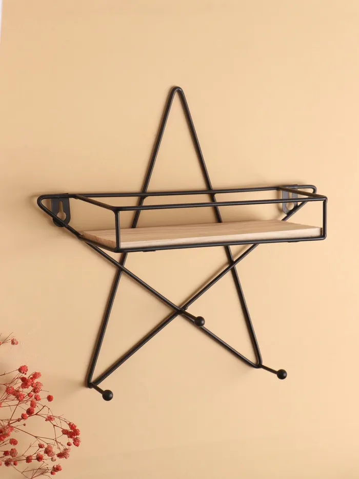 Вешалка настенная с полкой «Звезда», крючки декоративные, с подсветкой, 3 крючка, чёрная — Характеристики