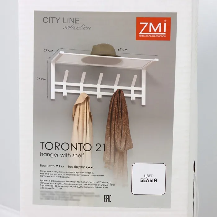 Вешалка с полкой «Торонто 21», 67×27×27 см, 5 двойных крючков, белая — Характеристики