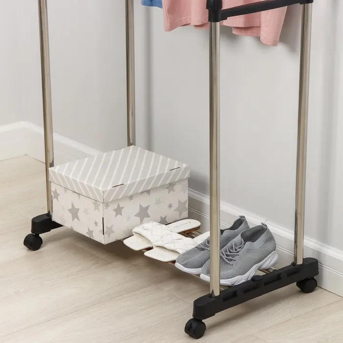 Напольная вешалка для одежды подходит как для домашнего использования хранения верхней одежды, брюк, так и для производственных нужд. Вместительная и надежная она станет вашим незаменимым помощником в наведении порядка в прихожей, коридоре и аккуратном хранении одежды. С легкостью заменит неудобную и громоздкую мебель, шкаф. Помимо штанги есть удобная подставка для обуви.