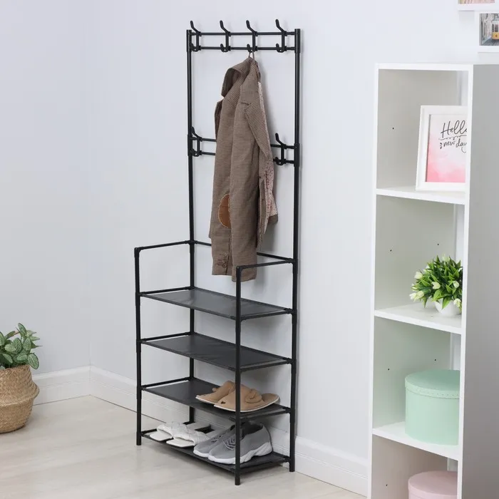 Вешалка - стойка напольная для одежды LaDо́m, полки для обуви, 4 яруса, 60×26×155 см, чёрная — Характеристики