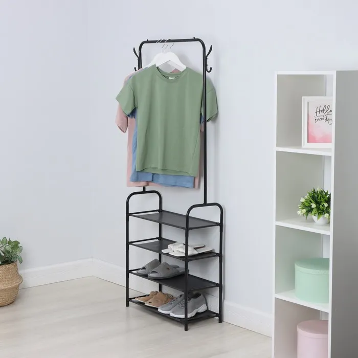 Вешалка - стойка напольная для одежды LaDо́m, с полками для хранения, 107×35×173 см, чёрная — Характеристики