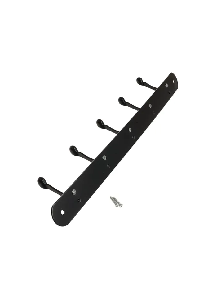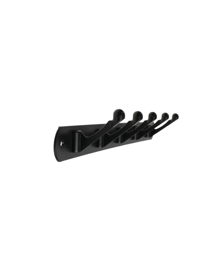 Металлическая вешалка с пятью рожками черного цвета для эффективного хранения одежды. Простое решение для практичной организации пространства.
