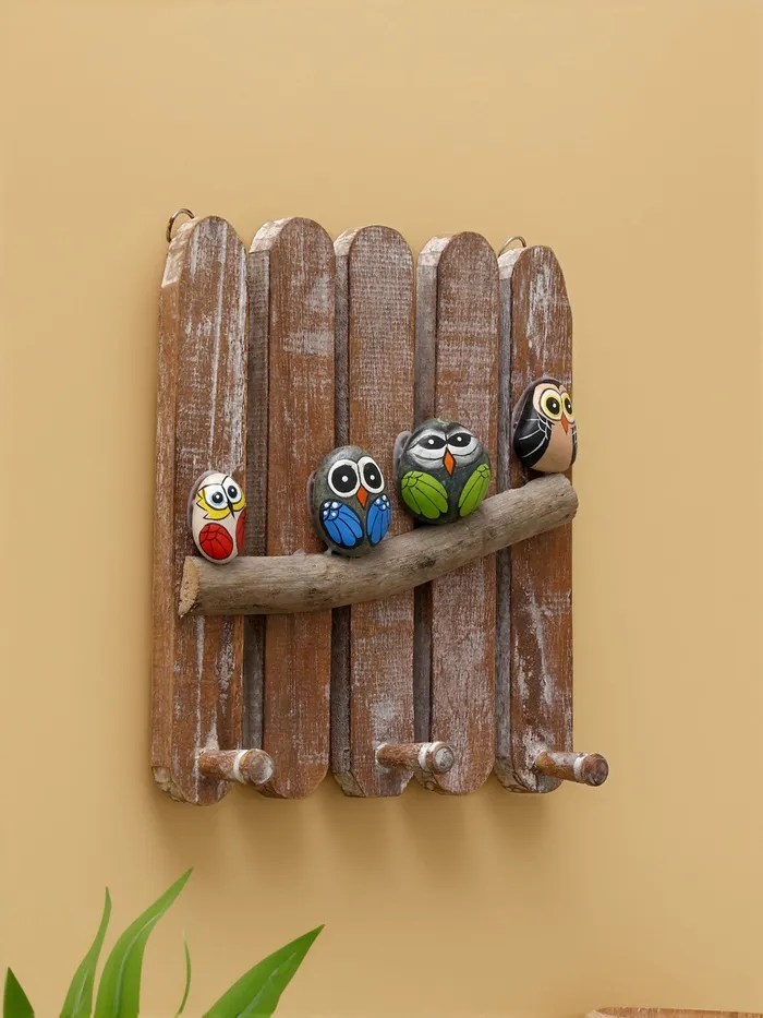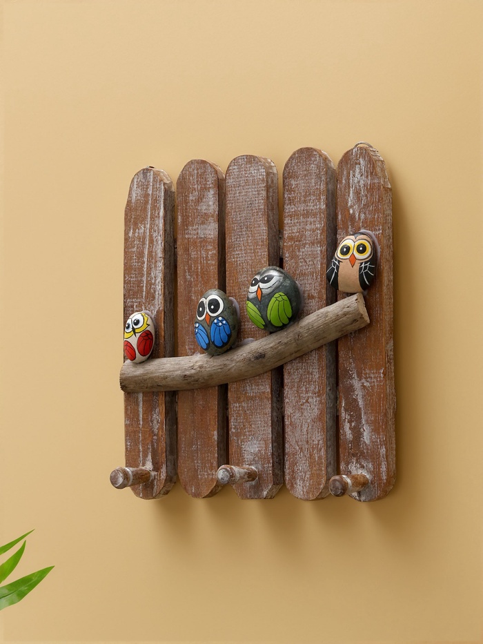 Настенные крючки декоративные «Филины на ветке», дерево, 18×26.5×4.5 см