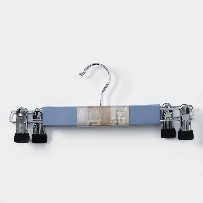 Вешалки для брюк и юбок LaDо́m Brillant, 28×12×2.3 см, 2 шт., деревянные, с зажимами, синяя — Характеристики