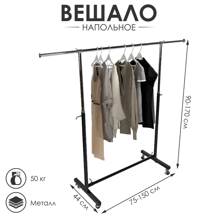 Вешало напольное без выноса размером 120*50*150 см — практичное и стильное решение для хранения одежды. С его помощью вы сможете удобно разместить различные предметы гардероба, такие как куртки, пальто, платья или рубашки. Чёрный цвет придаёт вешалке элегантный и универсальный вид, который гармонично впишется в любой интерьер.