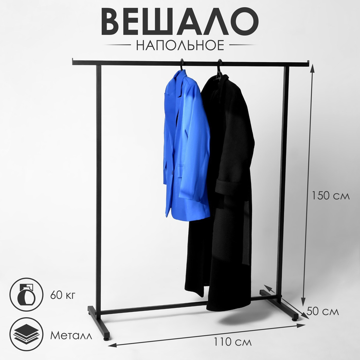 Вешало П-образное размер M напольное с выносом 110×50×150 см, цвет чёрный — Характеристики