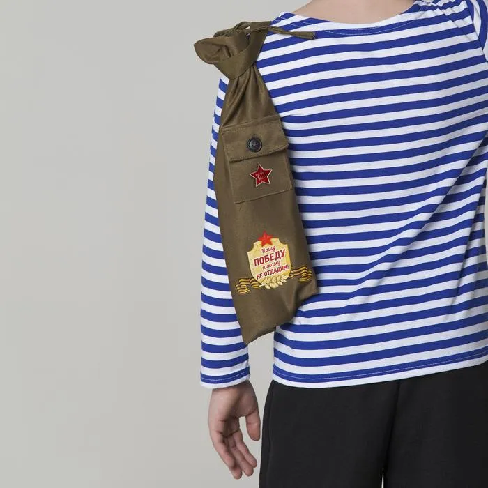 Вещмешок на бутылку с карманом, звезда-значок дополнит образ бравого солдата. В составе тематического костюма он отлично подойдёт для 23 Февраля, Дня Победы — любого военного праздника, а также для участия в представлениях и театральных постановках.