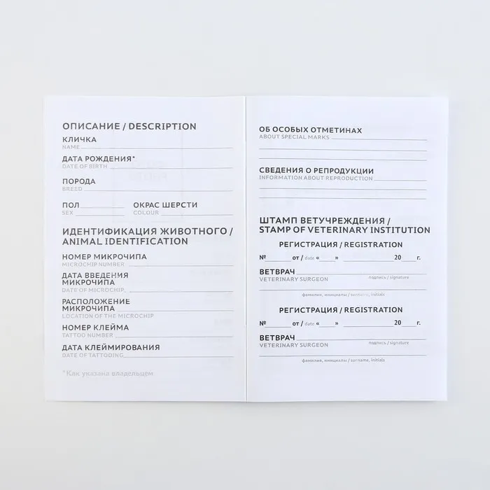 Забота о домашних животных — важная и неотъемлемая часть жизни современного цивилизованного общества. Все мы хотим видеть наших маленьких любимцев здоровыми, ведь они привносят радость в нашу повседневность. Ветеринарный паспорт для кошек — это международный документ, содержащий информацию о животном и контактные данные владельца. В паспорт животного вносятся сведения о проведённых вакцинациях и других профилактических мероприятиях. Кроме того, в ветпаспорт ставится отметка о чипировании и вклеивается идентификационная наклейка, содержащая информацию о номере чипа. На его основе выдаётся ветеринарная справка для провоза животных в общественном наземном и воздушном транспорте.