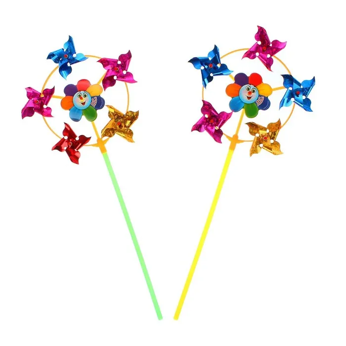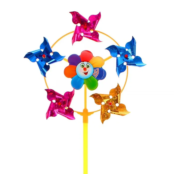 Яркий и лёгкий ветерок из фольги «Семицветик» — отличная игрушка для прогулок и активных игр на свежем воздухе. Его блестящие лепестки красиво переливаются на солнце, а при дуновении ветра начинают быстро вращаться, создавая эффект завораживающего водоворота.