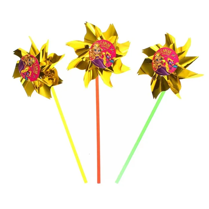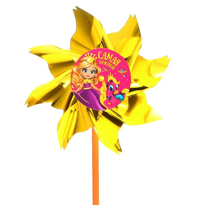 Яркий и лёгкий ветерок из фольги «Принцесса» — отличная игрушка для прогулок и активных игр на свежем воздухе. Его блестящие лепестки красиво переливаются на солнце, а при дуновении ветра начинают быстро вращаться, создавая эффект завораживающего водоворота.