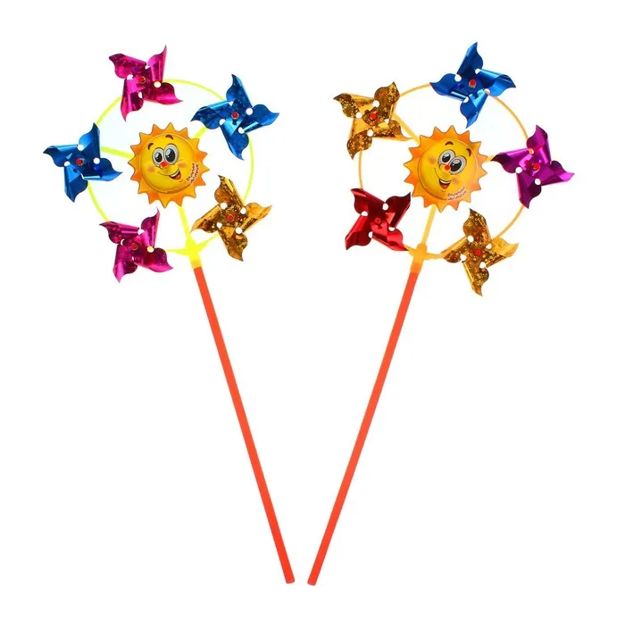 Яркий и лёгкий ветерок из фольги «Солнечного настроения» — отличная игрушка для прогулок и активных игр на свежем воздухе. Его блестящие лепестки красиво переливаются на солнце, а при дуновении ветра начинают быстро вращаться, создавая эффект завораживающего водоворота.