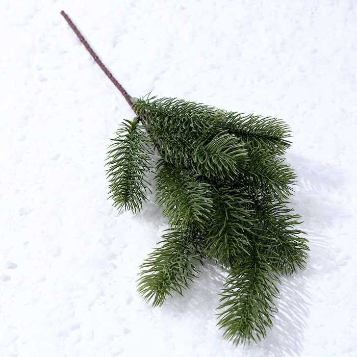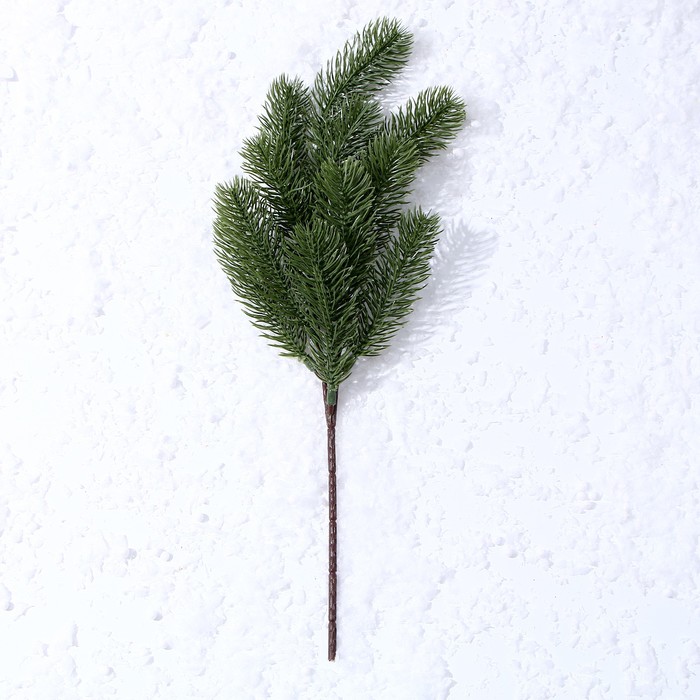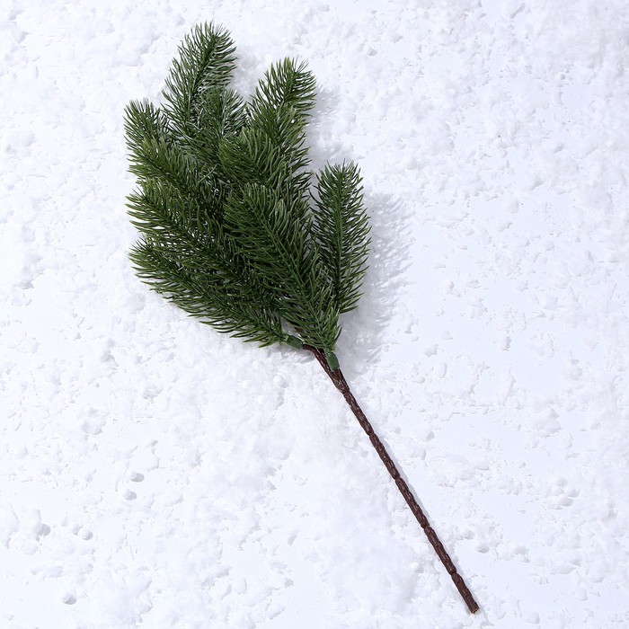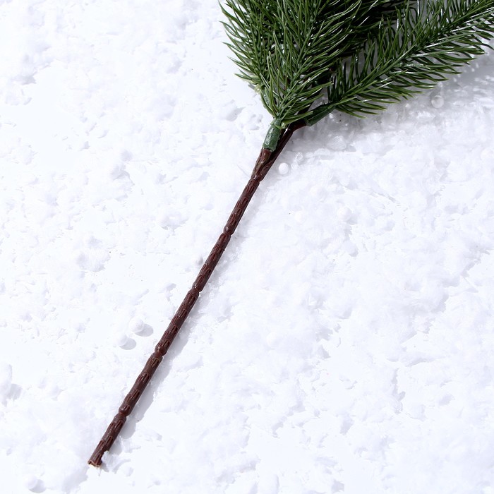 Декоративная веточка ели «Чудесная» — это стильное украшение для новогодних и праздничных композиций. Размер веточки позволяет использовать их как в интерьерных декорах, так и для украшения подарков.