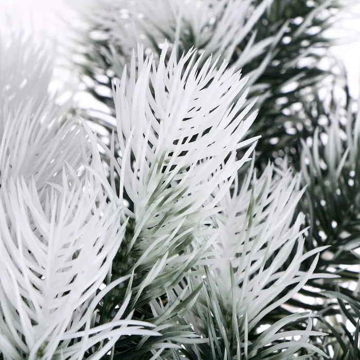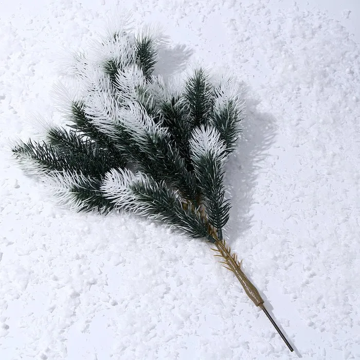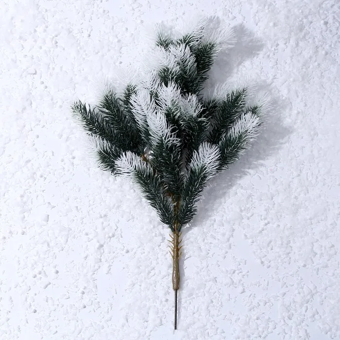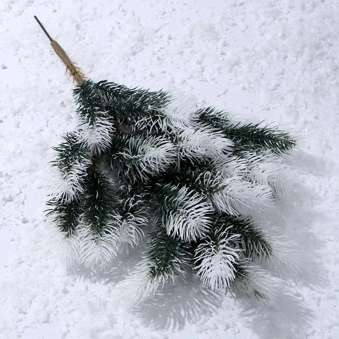 Декоративная веточка ели «Морозная» — это стильное украшение для новогодних и праздничных композиций. Размер веточки позволяет использовать их как в интерьерных декорах, так и для украшения подарков.