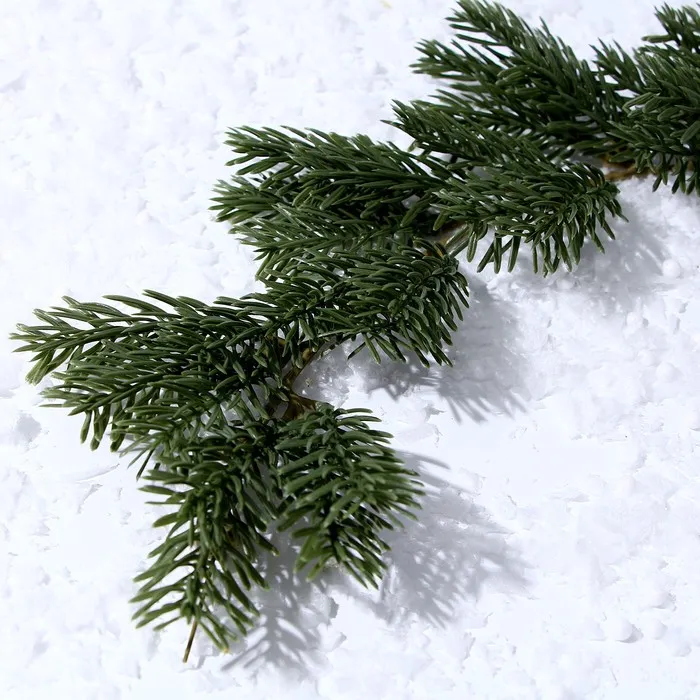 Декоративная веточка ели «Рождественская» — это стильное украшение для новогодних и праздничных композиций. Размер веточки позволяет использовать их как в интерьерных декорах, так и для украшения подарков.
