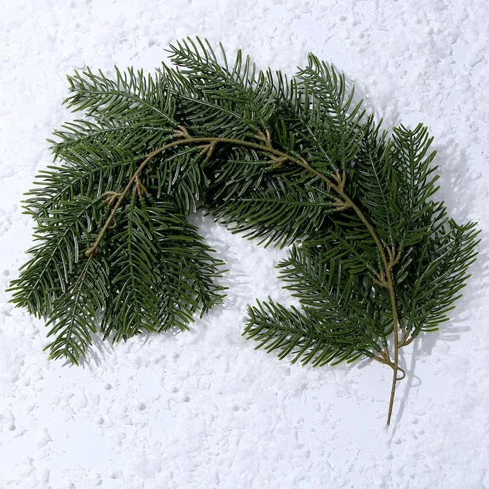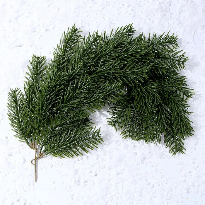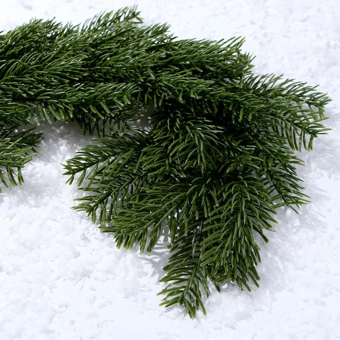 Декоративная веточка душистой ели — это стильное украшение для новогодних и праздничных композиций. Размер веточки позволяет использовать их как в интерьерных декорах, так и для украшения подарков.