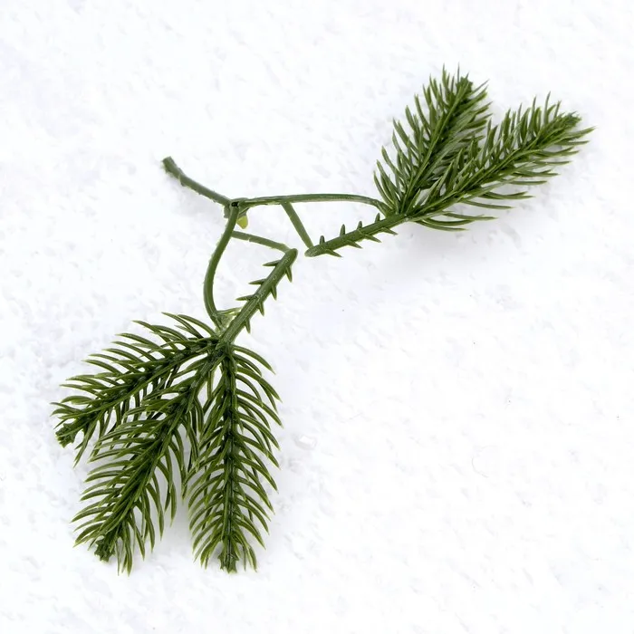 Декор для творчества выполнен в виде еловых веток. Они сделаны из пластика, являются декоративной имитацией настоящих еловых веток.