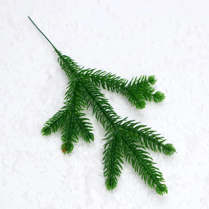 Декор для творчества выполнен в виде еловых веток. Они сделаны из пластика, являются декоративной имитацией настоящих еловых веток.