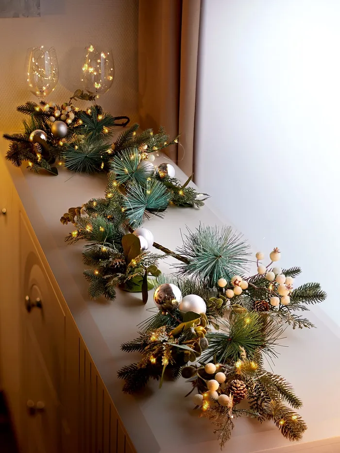 Эта светодиодная ветка длиной 153 см — воплощение природной элегантности в декоративном освещении, которое добавит тепла и уюта в любое внутреннее пространство. С 30 светодиодами, излучающими тёплый белый свет, она создаёт мягкое и равномерное свечение, идеально подходящее для создания атмосферы спокойствия и праздничного настроения без лишнего шума или яркости.