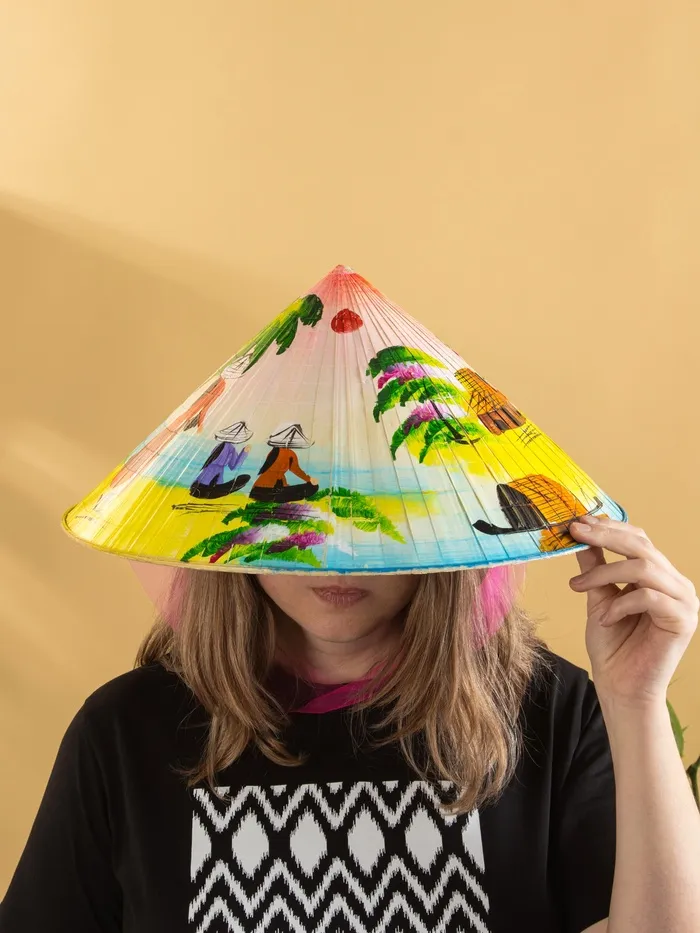 Вьетнамская конусная шляпа с рисунком, 41 см, МИКС