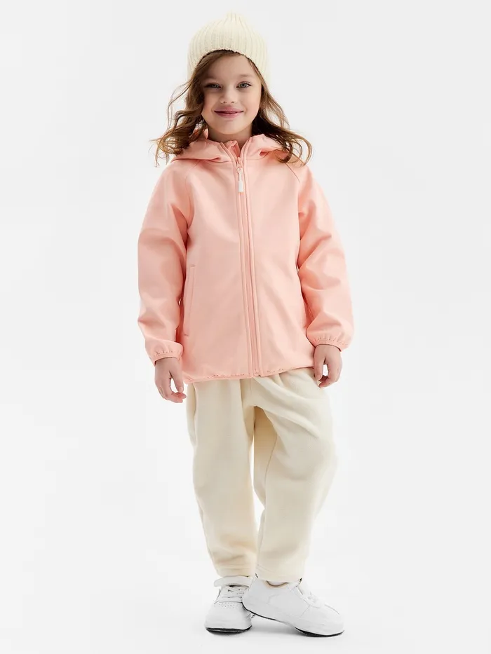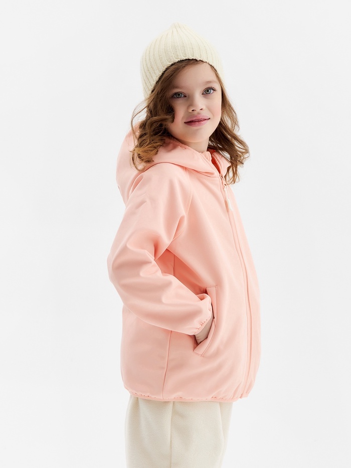 Персиковая ветровка для девочек из материала Softshell — идеальный выбор для прохладной демисезонной погоды. Эта стильная куртка разработана для повседневного использования и обеспечивает защиту от внезапного дождя благодаря водонепроницаемой мембране.