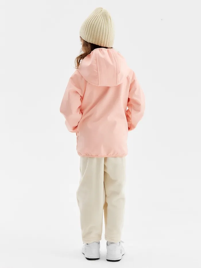 Персиковая ветровка для девочек из материала Softshell — идеальный выбор для прохладной демисезонной погоды. Эта стильная куртка разработана для повседневного использования и обеспечивает защиту от внезапного дождя благодаря водонепроницаемой мембране.
