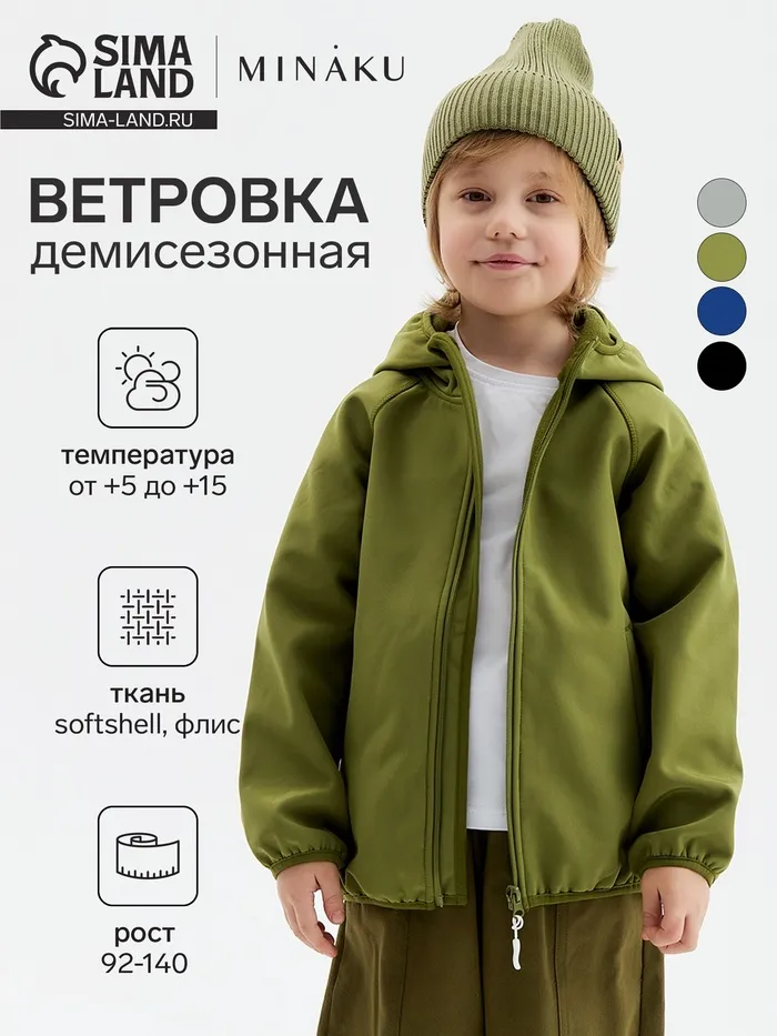 Ветровка демисезонная для мальчиков MINAKU из Softshell на флисе, непромокаемая, оливковая, рост 110 см — Характеристики