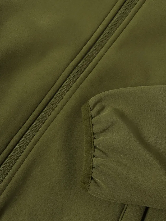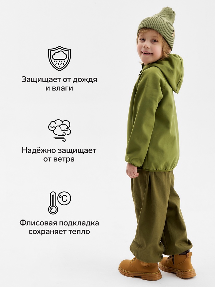 Демисезонная ветровка из софтшелла для мальчиков станет идеальным выбором для межсезонья. Эта оливковая ветровка надёжно защищает от дождя и ветра, оставаясь при этом лёгкой и комфортной. Подкладка из флиса придаёт дополнительный уют и позволяет носить её в температурном режиме от +5 до +15 °С.