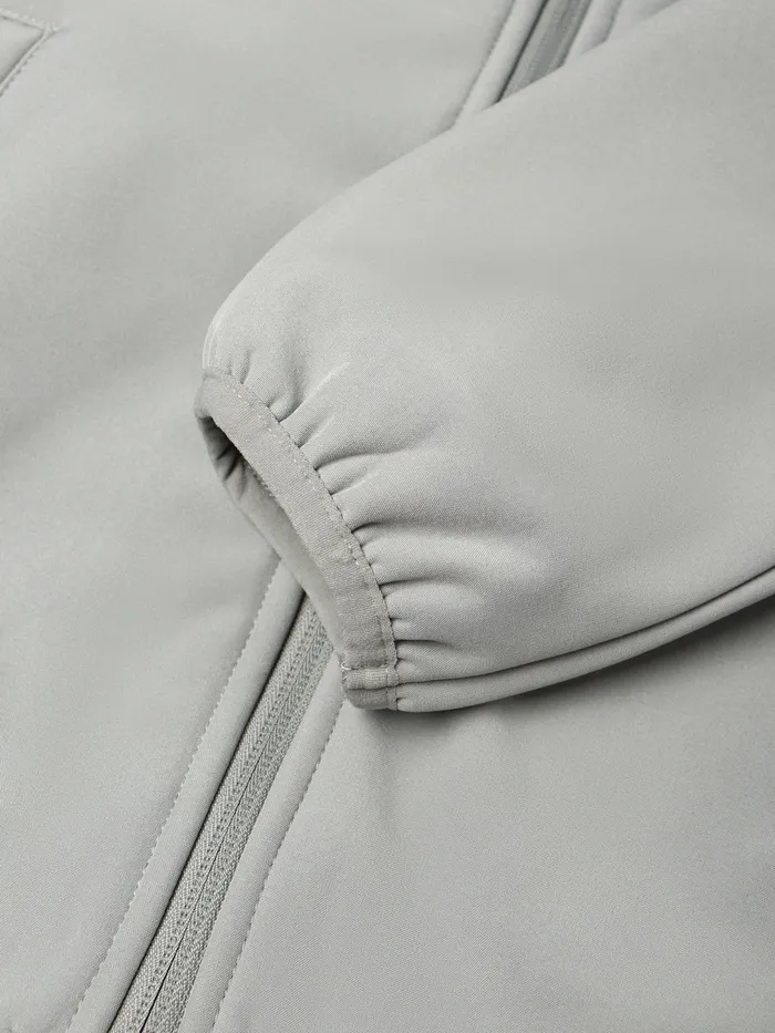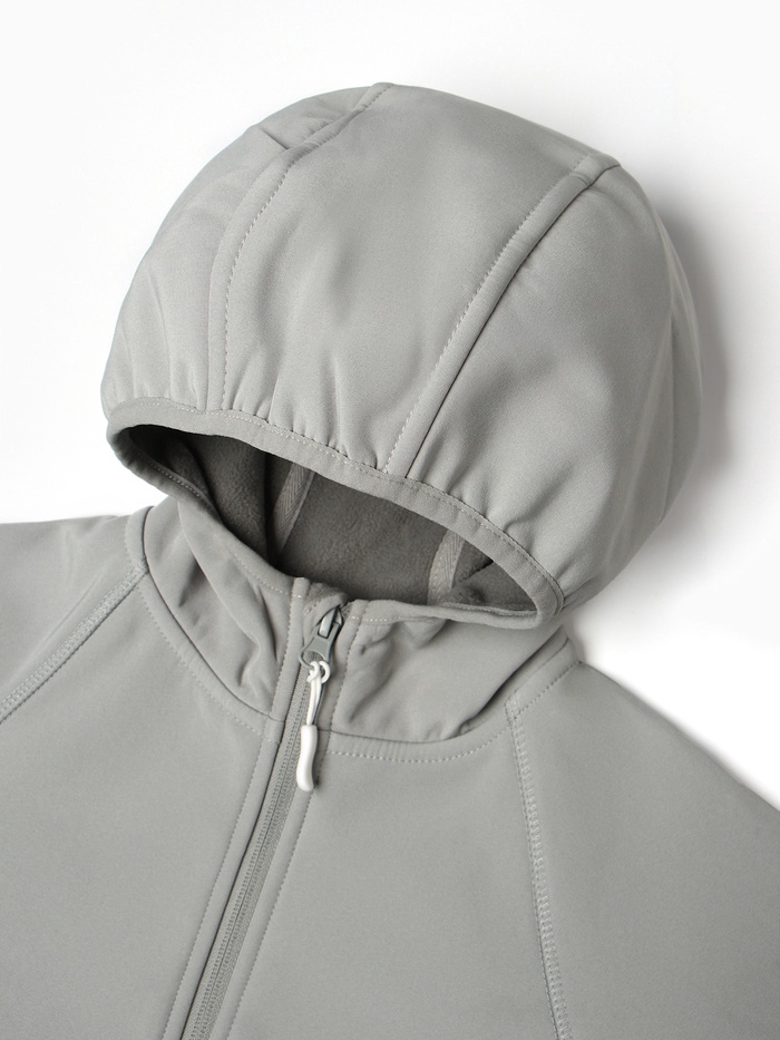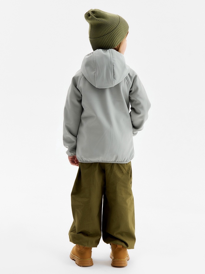 Демисезонная ветровка для мальчиков из софтшелла предлагает идеальное сочетание комфорта и защиты. Эта серая куртка предназначена для активных прогулок при температуре от +5 до +15 °С.