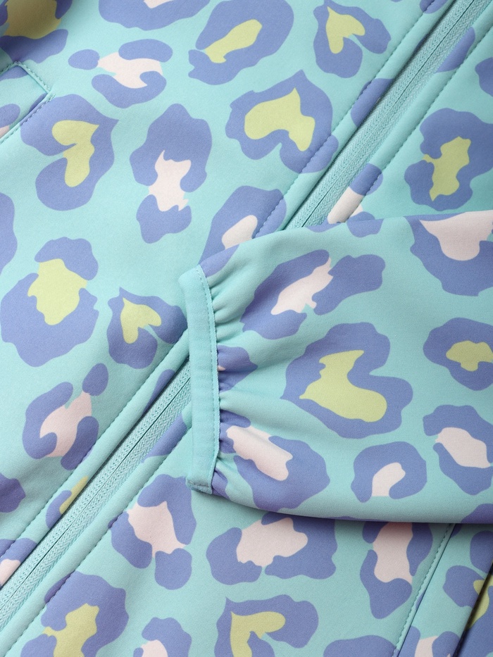 - Маленьким модницам обязательно понравится леопардовый принт, сочетающий голубые и зелёные оттенки.
