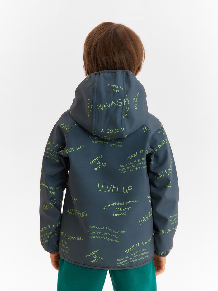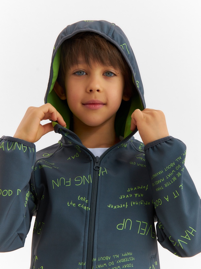 Стильная ветровка на флисовой подкладке для мальчиков станет идеальным выбором на межсезонье. Эта практичная одежда обеспечит комфорт и защиту от прохладного ветра, ведь она выполнена из мягкого флиса, который согревает в любую погоду. Благодаря гладкой текстуре и интересному принту с надписями, куртка не только функциональная, но и модная.