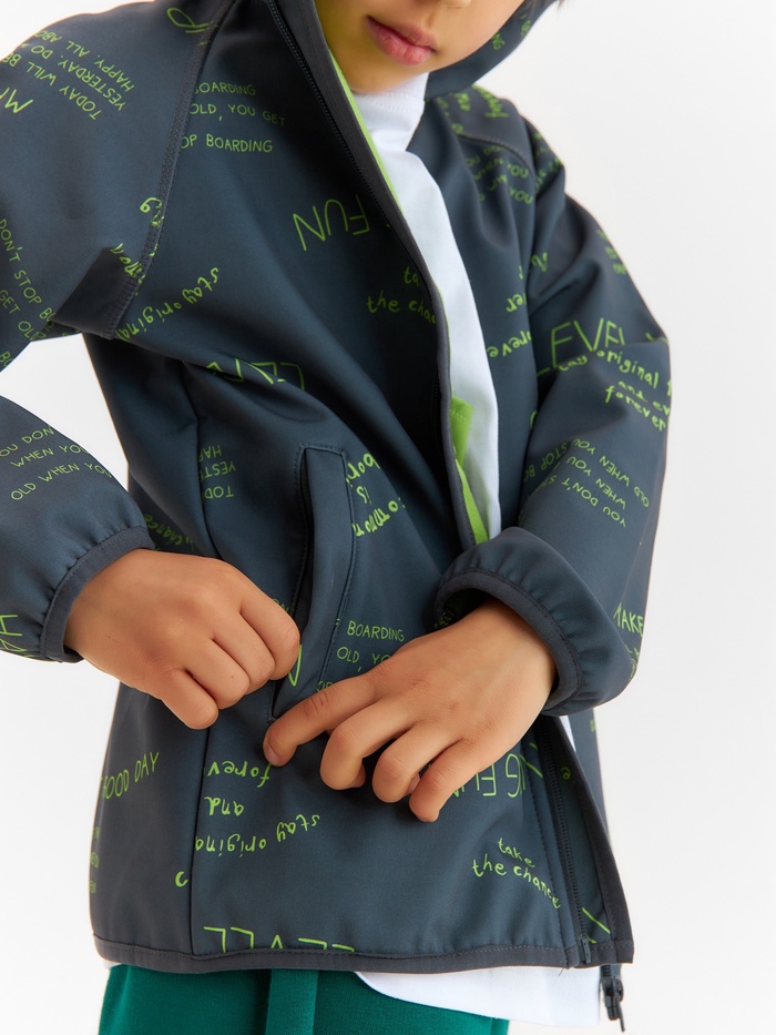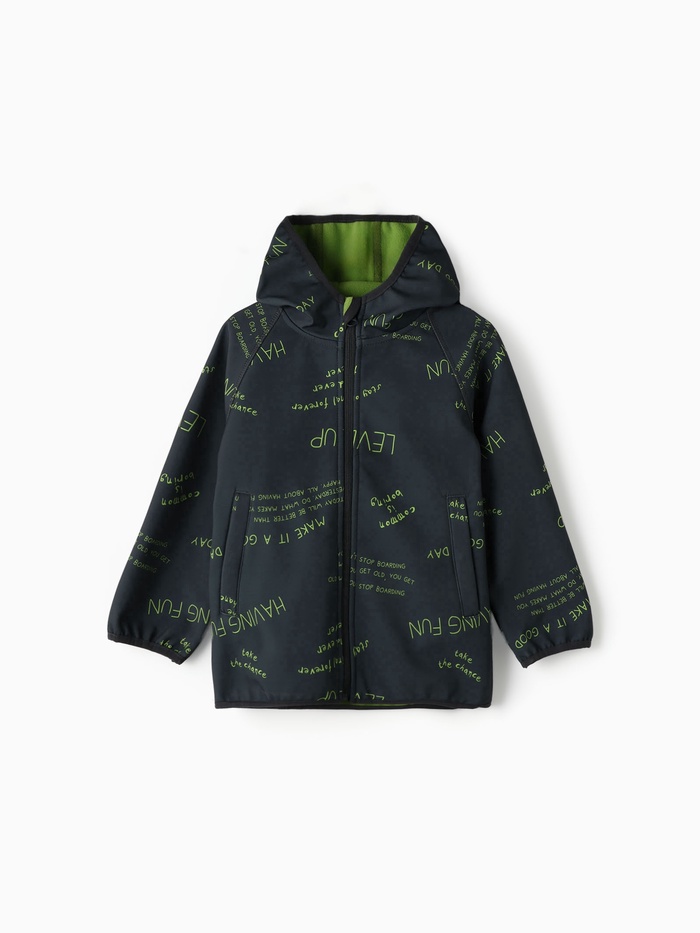 Стильная ветровка на флисовой подкладке для мальчиков станет идеальным выбором на межсезонье. Эта практичная одежда обеспечит комфорт и защиту от прохладного ветра, ведь она выполнена из мягкого флиса, который согревает в любую погоду. Благодаря гладкой текстуре и интересному принту с надписями, куртка не только функциональная, но и модная.