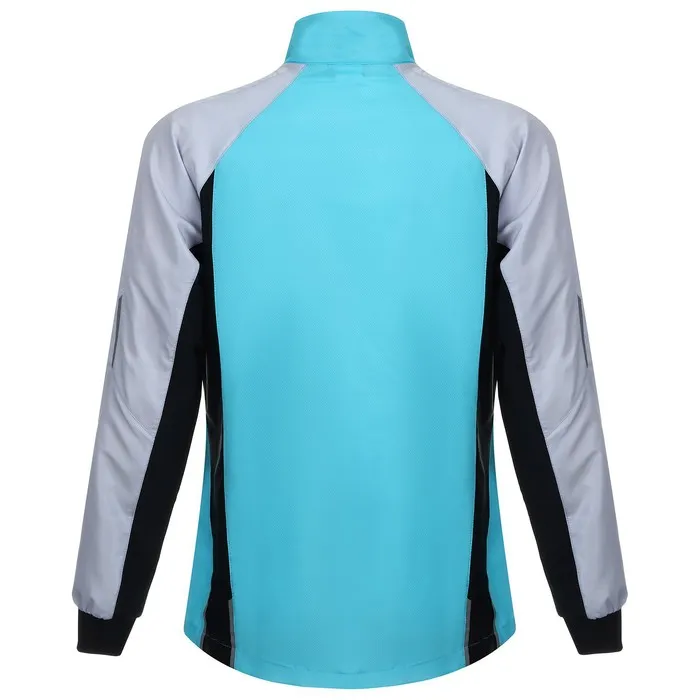 Куртка по боковой части до середины бедра и низ изделия по спинке оформлены фигурным полукруглым срезом. Оснащена нагрудным и двумя боковыми карманами на застёжках-молниях. По низу куртки по всей ширине расположена кулиса. Рукав-реглан со светоотражающим элементом в верхней части.