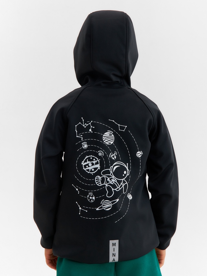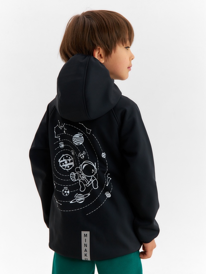Ветровка с капюшоном детская MINAKU: SPACE, чёрная, рост 134 см — Характеристики