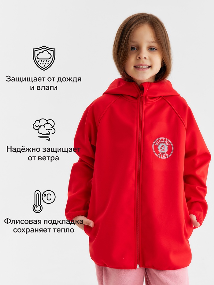 Ветровка с капюшоном детская MINAKU: SPACE, красная, рост 128 см — Характеристики