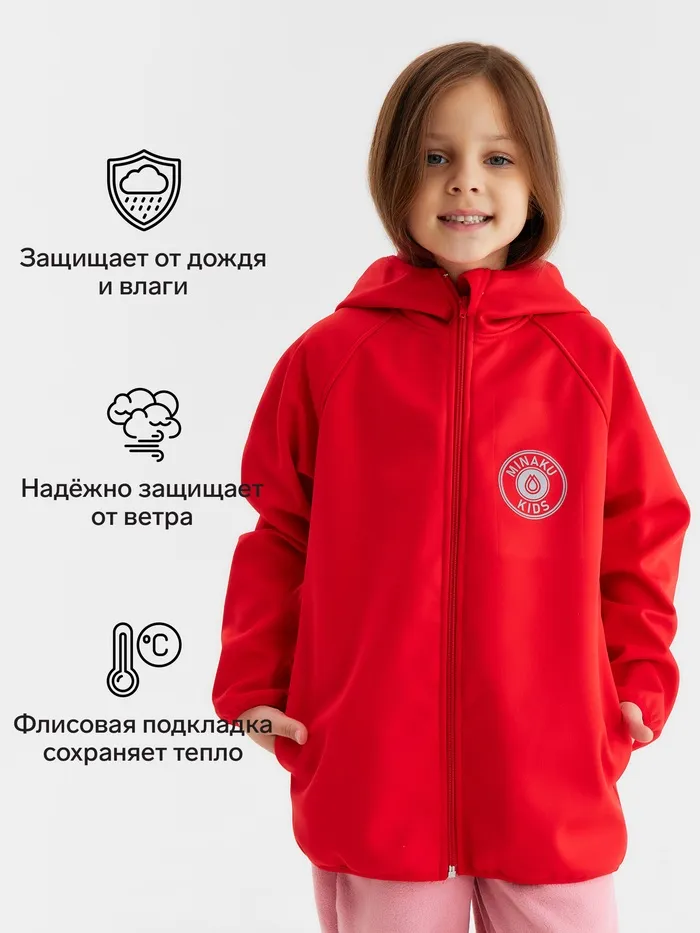 Ветровка с капюшоном детская MINAKU: SPACE, красная, рост 146 см — Характеристики