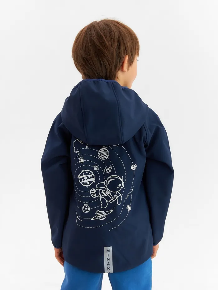 Ветровка с капюшоном детская MINAKU: SPACE, тёмно-синяя, рост 128 см — Характеристики