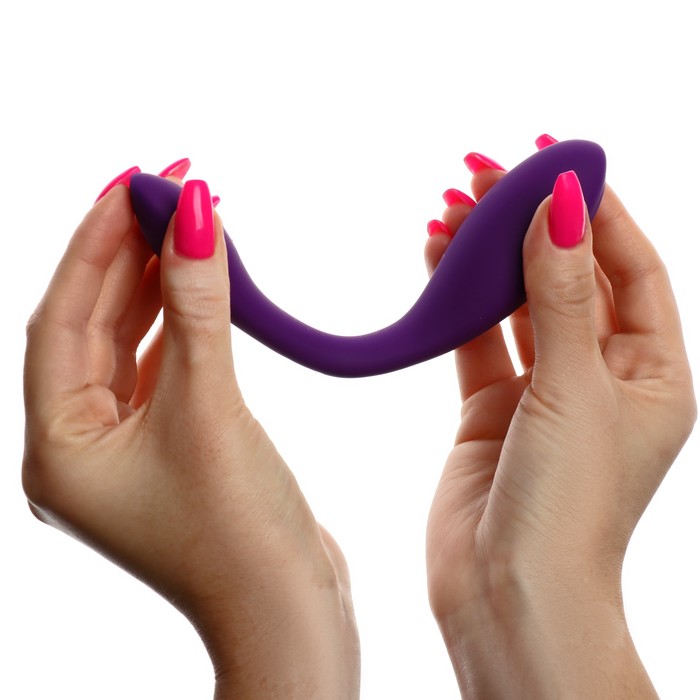 Вибратор для пар выполненный из медицинского силикона. В комплект входит пульт,при помощи которого можно включать и переключать режимы, всего их 10. Вибратор позволит получить одновременное удовольствие для двух партнёров. Игрушку можно использовать во время секса, таким образом вибрация стимулирует три зоны: точку G, клитор и пенис партнёра. Тонкую часть вибратора необходимо ввести во влагалище, а другую его часть положить на клитор. В таком состоянии игрушку можно использовать во время секса, соло-практик, также можно использовать в качестве вкладыша в трусики.Игрушка водонепроницаема, это позволит брать её собой в душ. Питание от магнитной зарядки. Перед использованием необходимо промыть игрушку под проточной водой, далее обработать специальным спреем-клинером.Рекомендуется использовать с лубрикантом, дополнительная смазка обеспечит приятное введение игрушки во внутрь.
