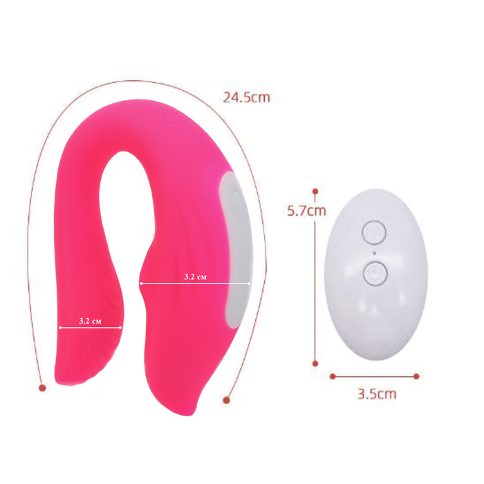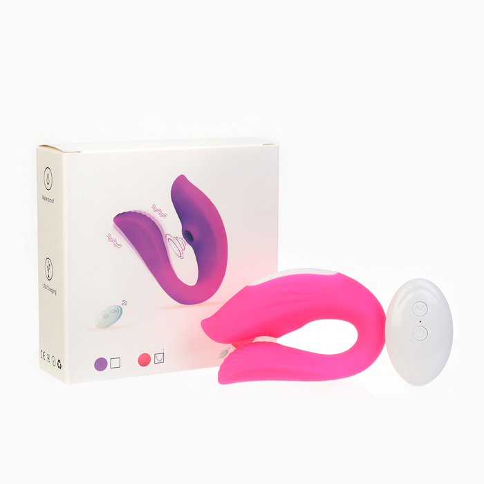 Вибратор для пар с вакуумно-волновой стимуляцией. В комплект входит пульт, при помощи которого можно включать и переключать режимы, всего их 10.