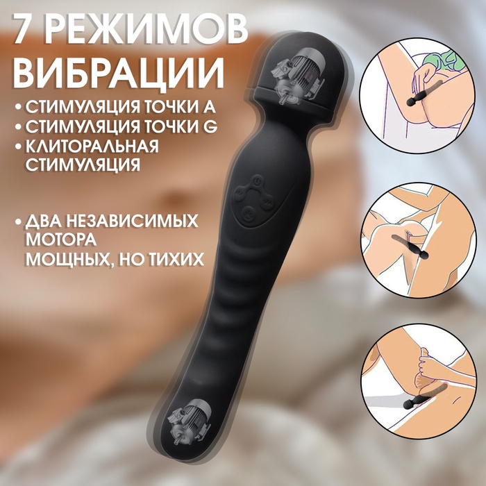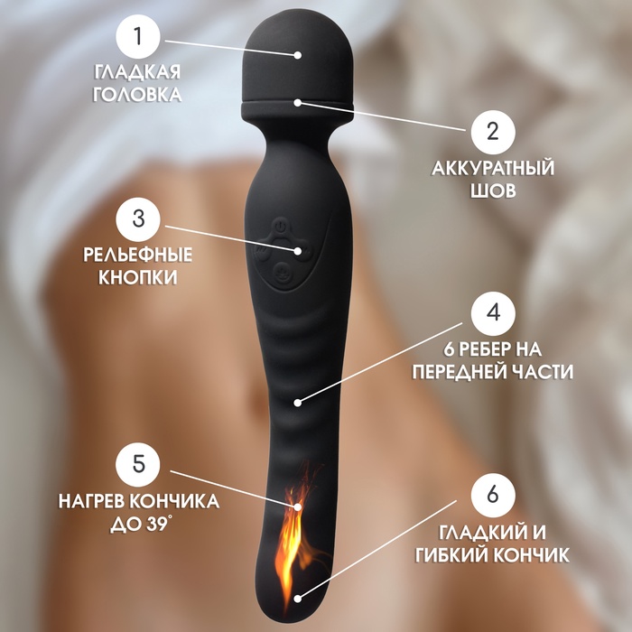 Вибратор двусторонний 7 режимов, с нагрев до 42 градусов, черный — Характеристики