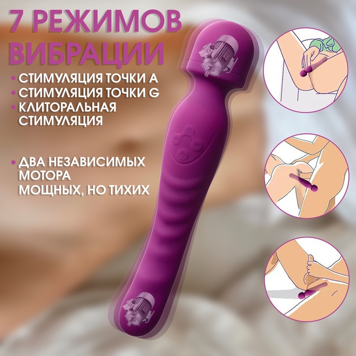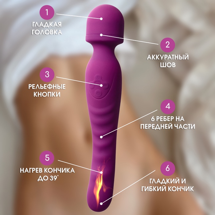 Вибратор двусторонний 7 режимов, с нагрев до 42 градусов, пурпурный — Характеристики