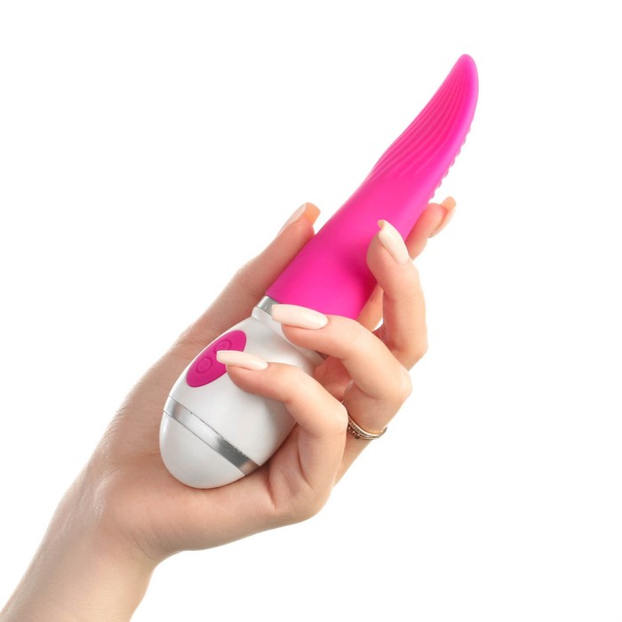 Вибратор с ротацией "Язык" выполнен из медицинского силикона. Ротация и изгиб вибратора позволяют простимулировать точку G, также можно использовать вибратор для стимуляции клитора. Игрушка имеет две кнопки, первой можно выключить и включить вибратор , вторая позволит менять режим вибрации, их всего 12 . Водонепроницаем, что позволит брать вибратор с собой в душ. Питание от аккумулятора с напряжением 3,7 Вт.