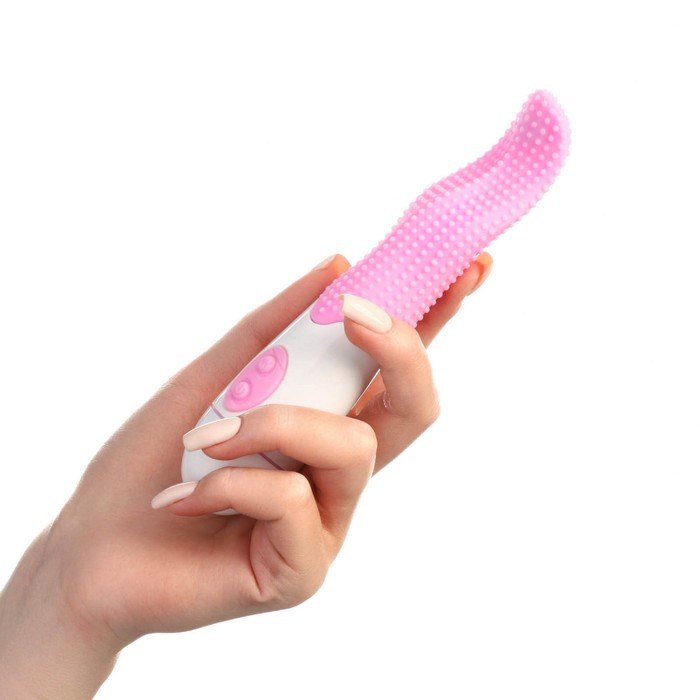 Вибратор с ротацией "Язык" выполнен из медицинского силикона. Изгиб вибратора позволяет простимулировать точку G, также можно использовать вибратор для стимуляции клитора. Игрушка имеет две кнопки, первой можно выключить и включить вибратор , вторая позволит менять режим вибрации, их всего 12 .