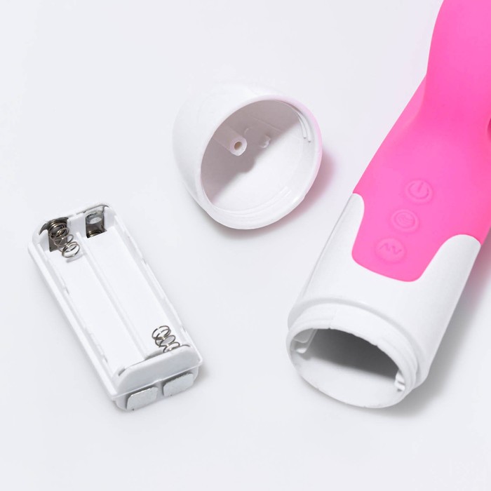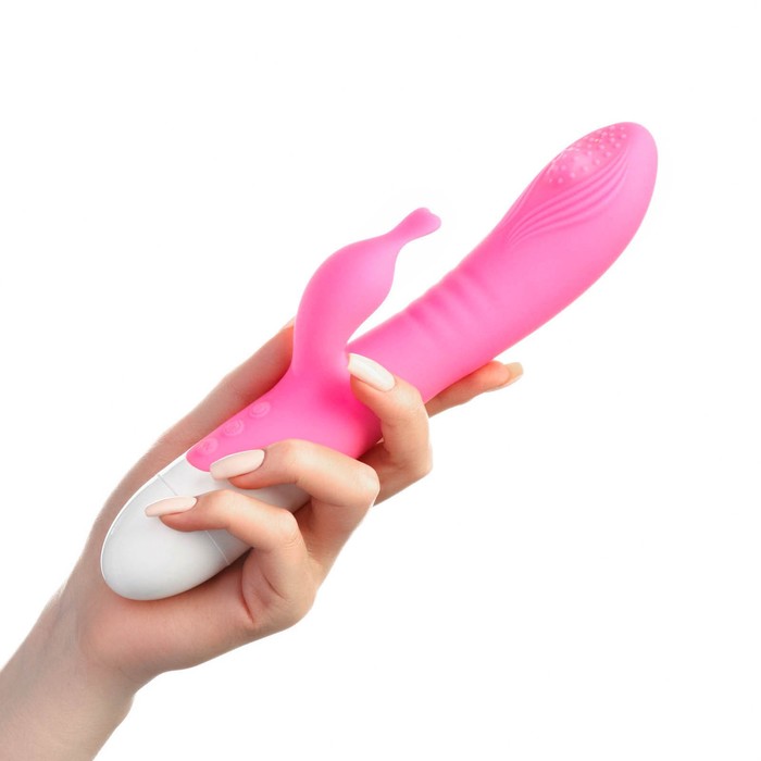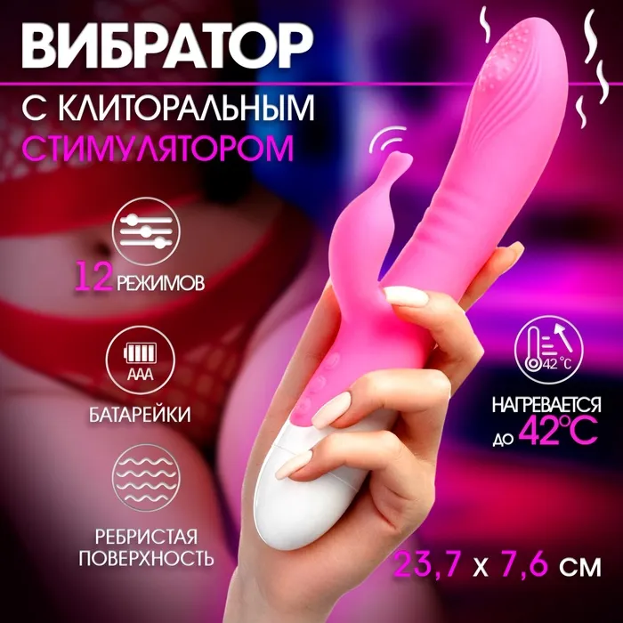Вибратор-кролик выполнен из медицинского силикона. Игрушка одновременно стимулирует точку G и клитор. Имеет 12 режимов вибрации и функию нагрева,игрушка разогревается до 42 градусов. Регулировать режимы можно при помощи одной кнопки. Вибратор водонепроницаем, это позволит брать игрушку с собой в душ. Питание от батареек типа ААА.
