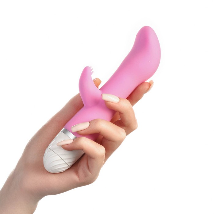 Вибратор-кролик выполнен из медицинского силикона. Игрушка одновременно стимулирует точку G и клитор. Регулировать интенсивность вибрации можно при помощи колёсика . Вибратор водонепроницаем, это позволит брать игрушку с собой в душ. Питание от 2 батареек типа ААА, в комплект не входят.