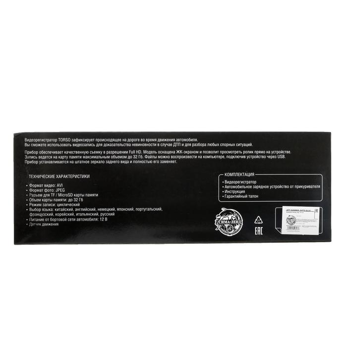 Видеорегистратор TORSO - это ваш помощник в непредвиденной ситуации на дороге. Устройство записывает видео в качественном HD формате. Прибор оснащен ЖК экраном, что позволяет вам просмотреть видеозапись прямо на устройстве. Также вы можете воспроизвести запись на ПК подключив устройство через USB порт. Запись ведется на карту памяти с максимальным объёмом до 32 Гб. Видеорегистратор устанавливается на зеркало заднего вида.