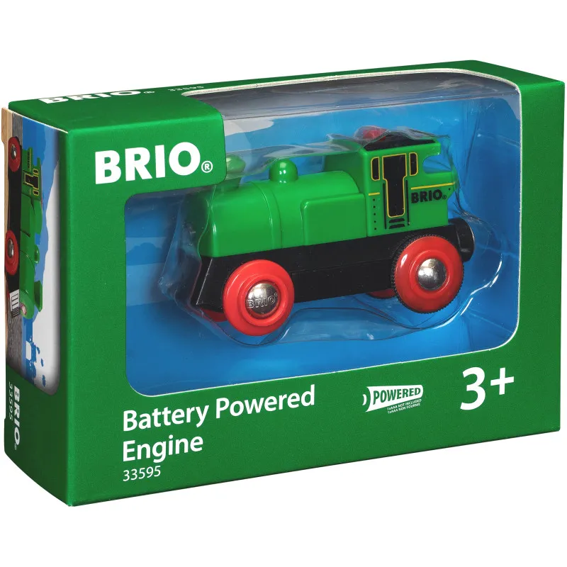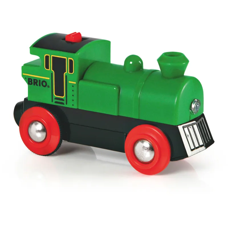 Зеленый паровозик на батарейках Brio 33595 мчится на полной скорости вперед! Этот классический зеленый паровозик обрел новый облик, который уважает традиции прошлого. Паровозик на батарейках движется вперед, назад и оснащен работающими передними фарами.